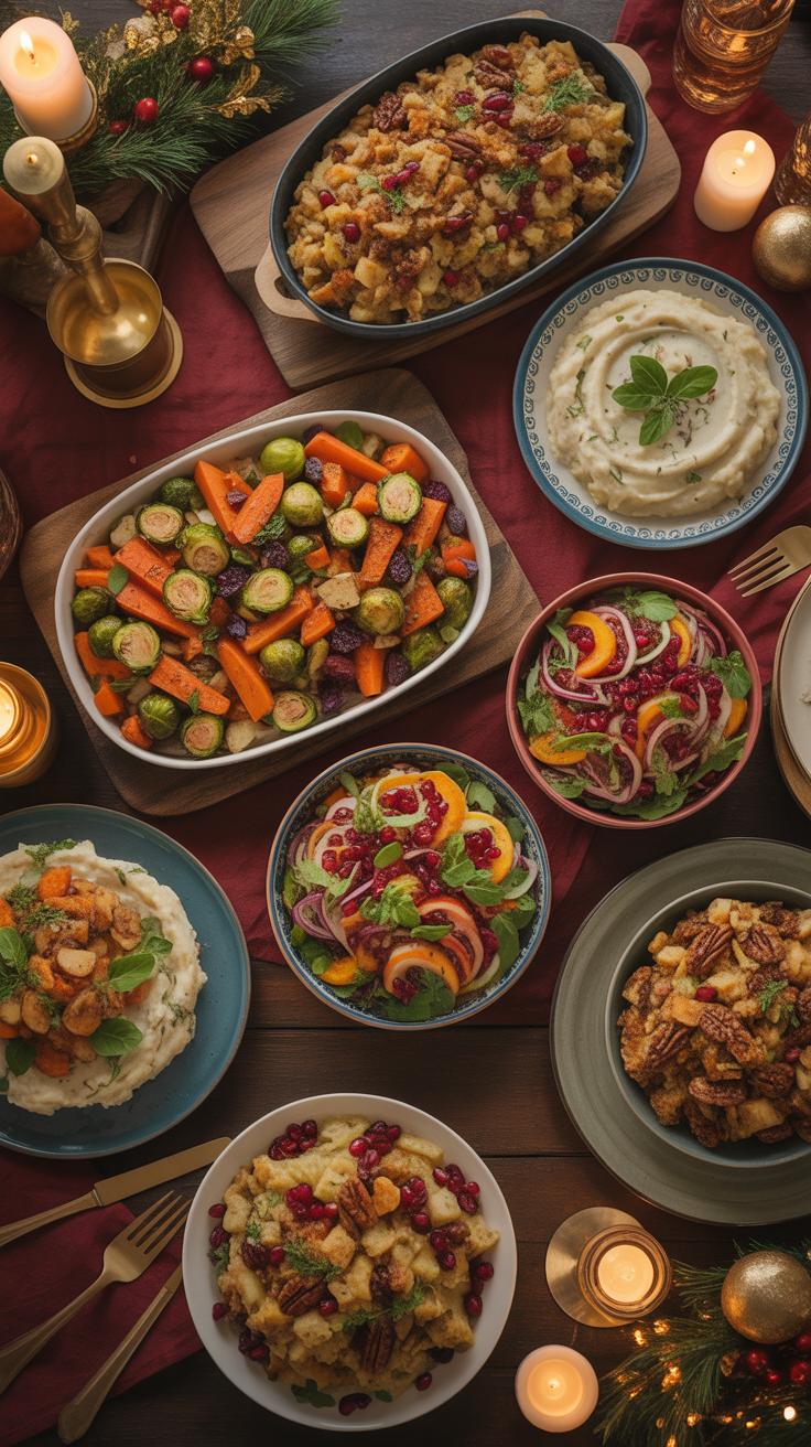 For vegan and vegetarian guests, think about hearty vegetables and grains that bring texture and flavor. Roasted Brussels sprouts with balsamic glaze often surprise people—they taste rich and festive without any dairy or meat. Sweet potato mash made with coconut milk can offer that creamy feel you expect in holiday dishes. Also, lentil or chickpea-based salads, like a spiced Moroccan chickpea salad, can work as a satisfying side. Something I’ve noticed is that using toasted nuts or seeds ups the satisfaction level, giving a nice crunch to otherwise soft dishes.
