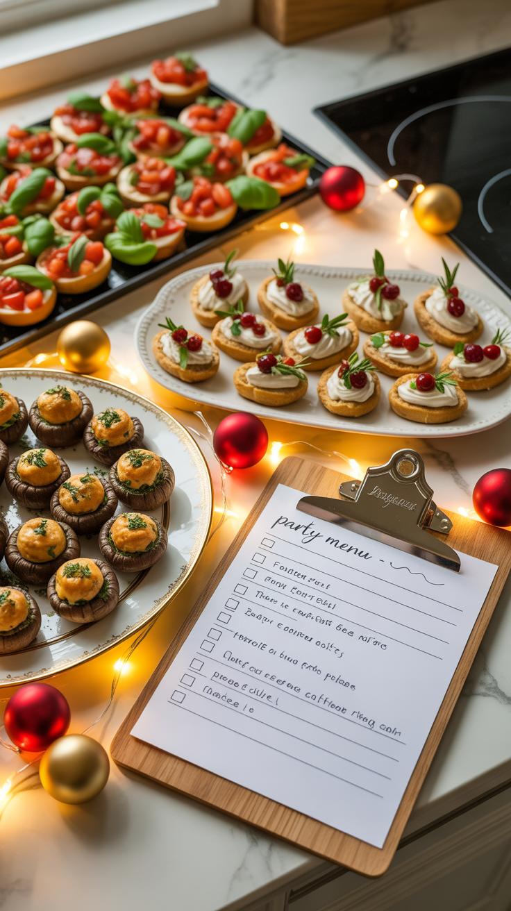 Start by jotting down your appetizer menu early. You want a clear idea before heading to the store—this saves time and prevents impulse buys that usually just clutter the fridge.