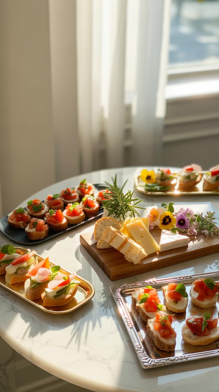 Plating plays a big role. Instead of crowding all appetizers on one big platter, try several smaller plates spread around. It invites movement and gives guests choice without confusion. You might set up a few stations—maybe a cheese board here, a veggie tray there—making sure everything is within reach.