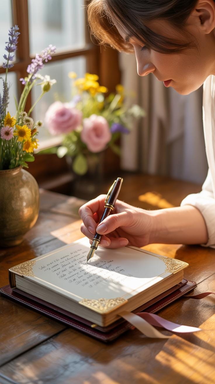 Your handwriting itself becomes an artifact worthy of preservation within the pages. The natural variations in pressure, slant, and spacing reveal authentic emotional currents that typed words cannot capture. Consider layering journal entries with torn manuscript pages, vintage letter fragments, or quotes rendered in your own careful script. These textural combinations create visual rhythm while honoring the sacred act of writing by hand—a practice that deepens introspection and anchors memories more firmly within both page and psyche than any digital alternative can achieve.