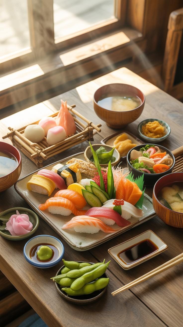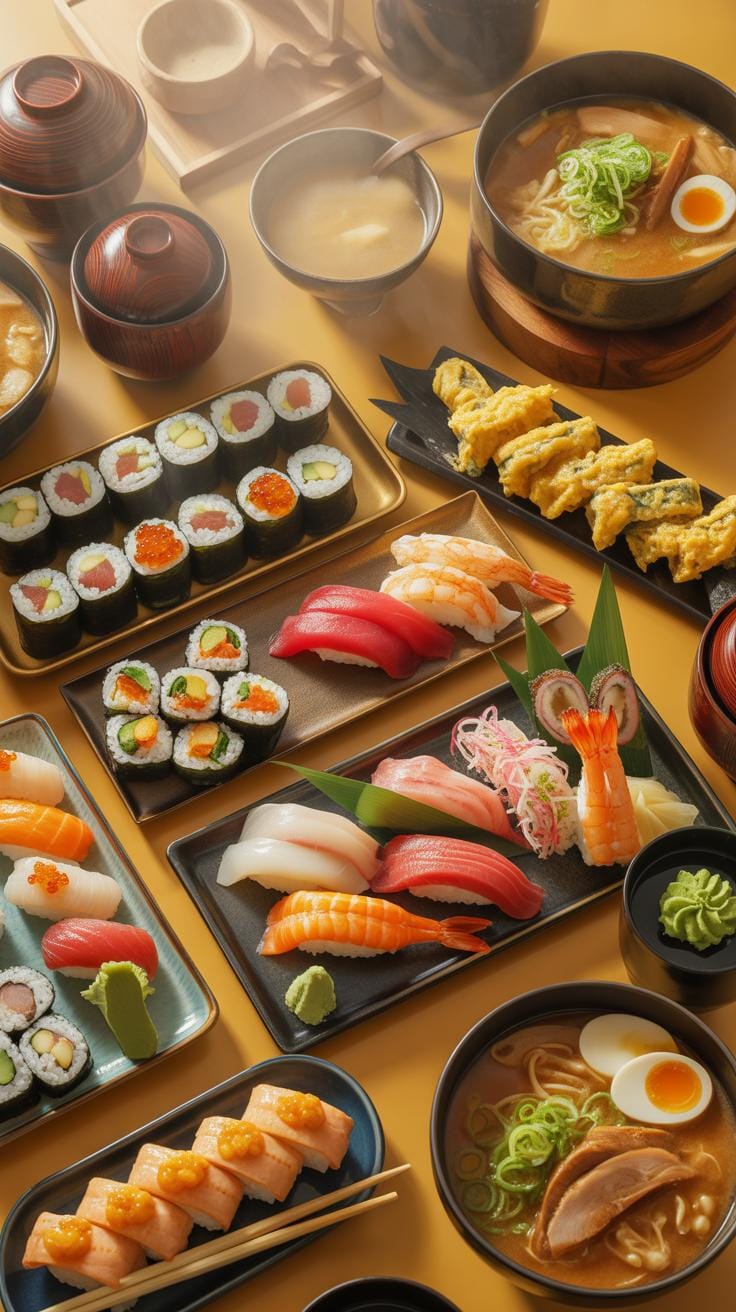 Common dishes include sushi, which you might think of as just raw fish and rice, but it can be quite complex. Then there’s miso soup—a simple broth with fermented soybean paste, tofu, and seaweed—that’s usually part of everyday meals. Tempura, batter-fried vegetables or seafood, adds a bit of texture contrast and flavor diversity. These dishes highlight Japan’s attention to seasonal and fresh ingredients, reflecting what’s available at different times of the year.