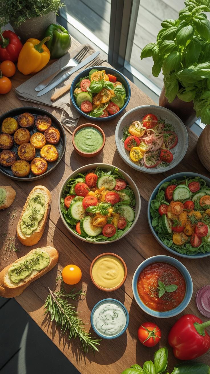 Vegetable crudités provide crunch and nutrients without cooking. Carrots, bell peppers, cucumbers, and cherry tomatoes cut into sticks work well. Celery adds satisfying texture. These raw vegetables keep you full and support good health. Pack hummus in a small container and vegetables in another for portable quick Mediterranean meals. Enjoy this combination at work, home, or anywhere your schedule takes you.