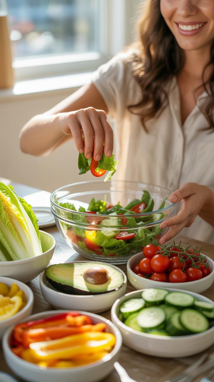 • Protein Toppers: Scatter chickpeas, feta cheese, or grilled chicken on top for heartiness.