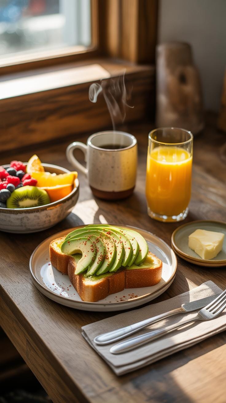 Whole grain bread forms the foundation for this nutrient rich start to your day. Toast it until it turns golden and crispy on both sides. Ripe avocado spreads easily across the warm toast. The healthy fats in avocado give you steady energy for hours ahead. This simple approach to quick Mediterranean meals beats rushed mornings every time.