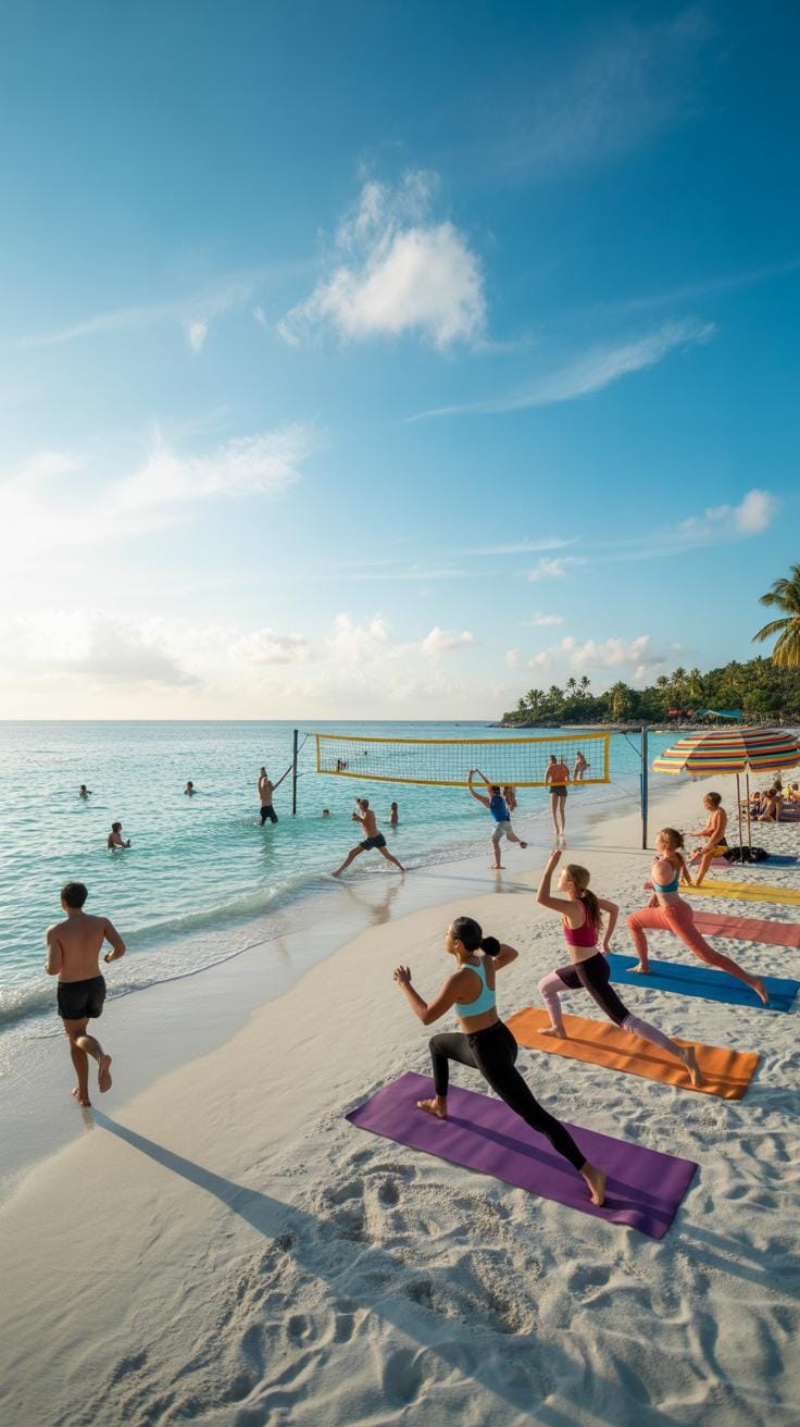 • Incorporating beach yoga or stretching routines to enhance flexibility and relaxation.
