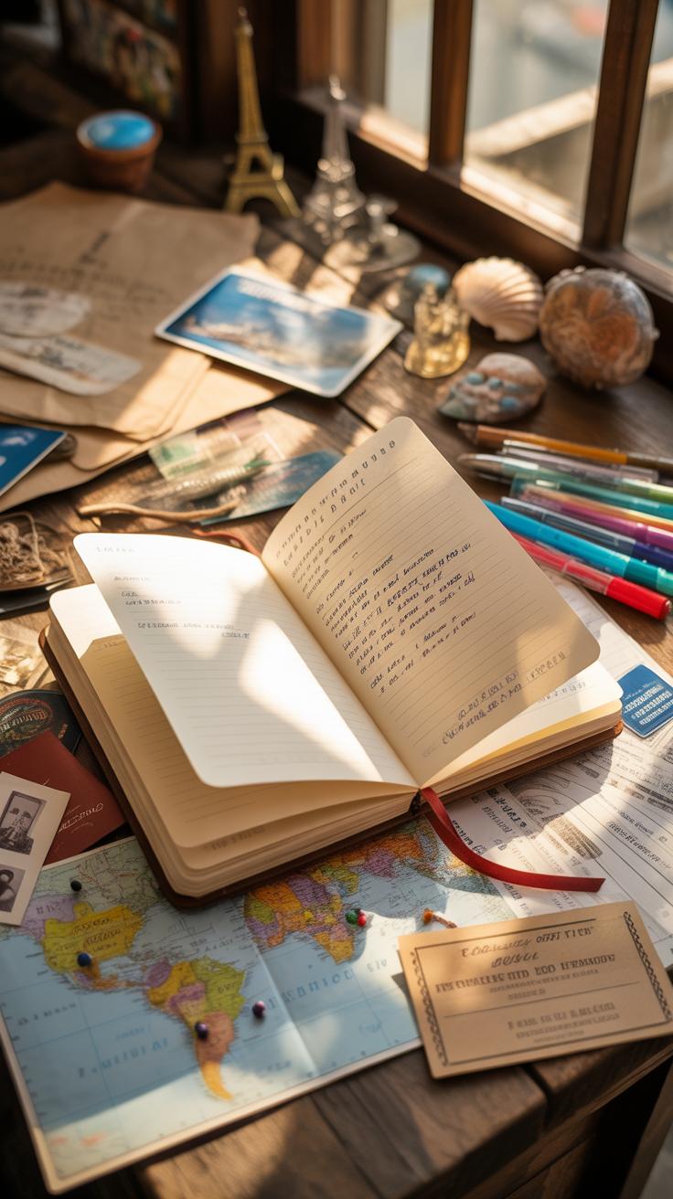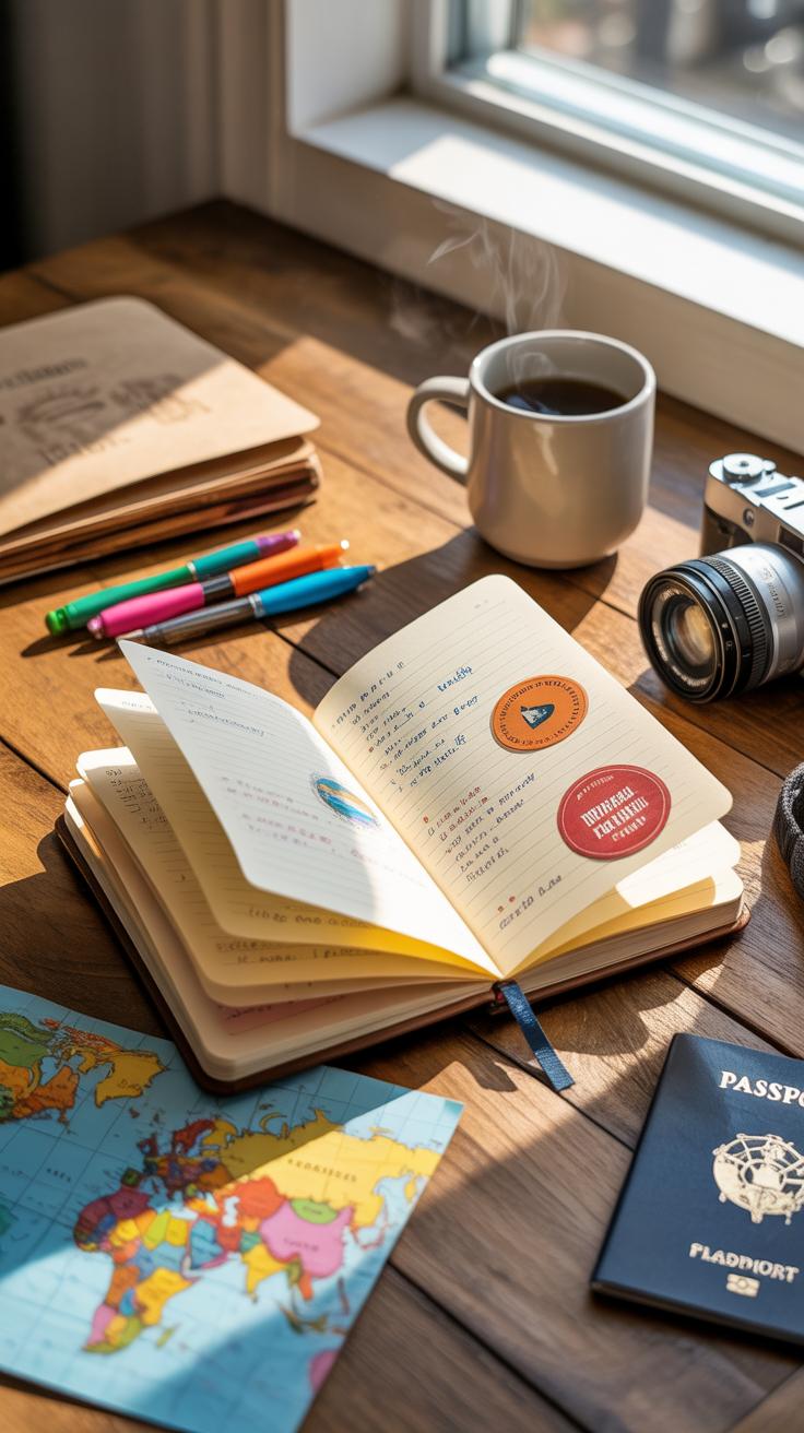 • Choose your journal type — Decide if you want a traditional notebook, a digital app, or a pre-printed travel book. This choice influences everything else, so think about your style and how you plan to use it.
