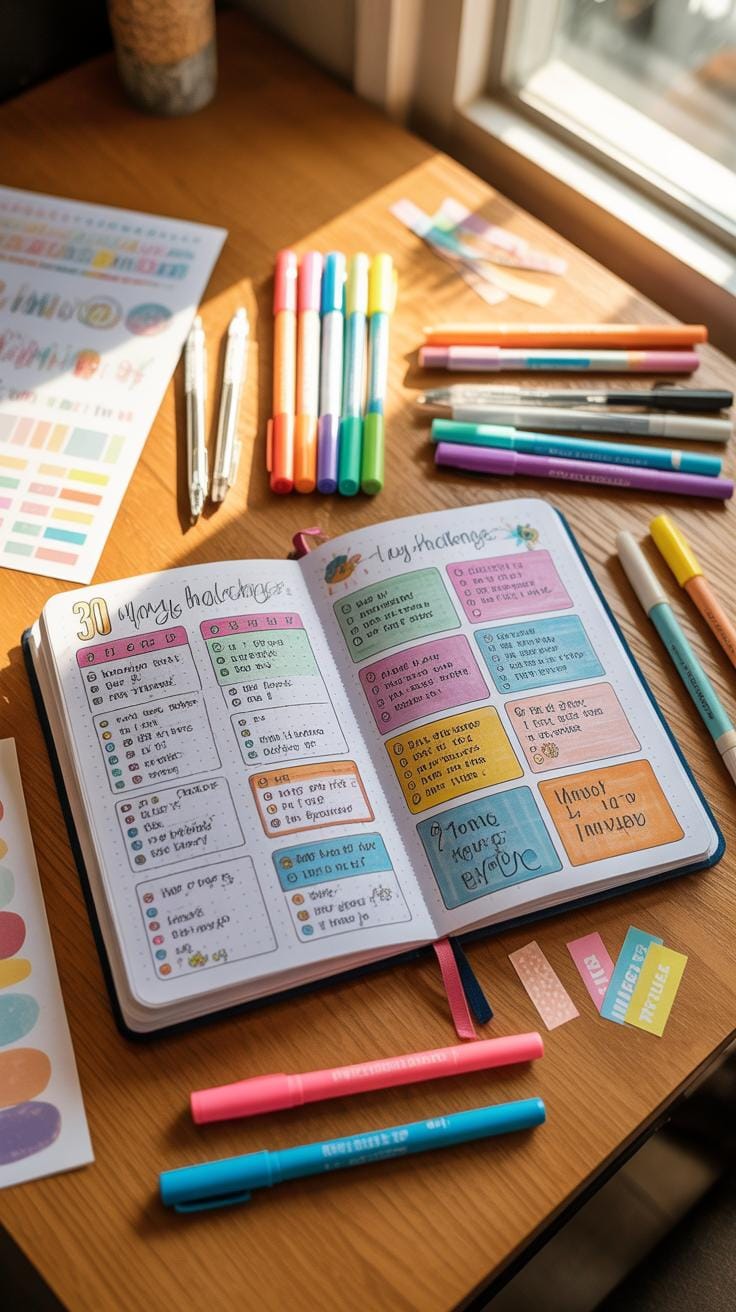Focus on specific colors to guide your 30 Day Challenge Journal Ideas during this month. Use soft blues for rainy days or bright yellows for sunny afternoon walks. This method follows the ideas of the Bauhaus movement where form and color communicate clear meanings. A Reading Journal Challenge might use deep reds to show intense scenes or pale greens for calm chapters. These visual prompts help you organize your thoughts without writing sentences.